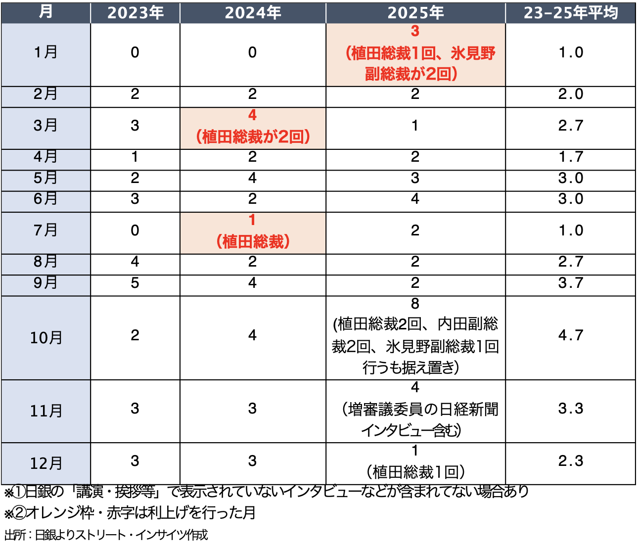 チャート:植田総裁就任後、政策委員会メンバーの講演などの回数