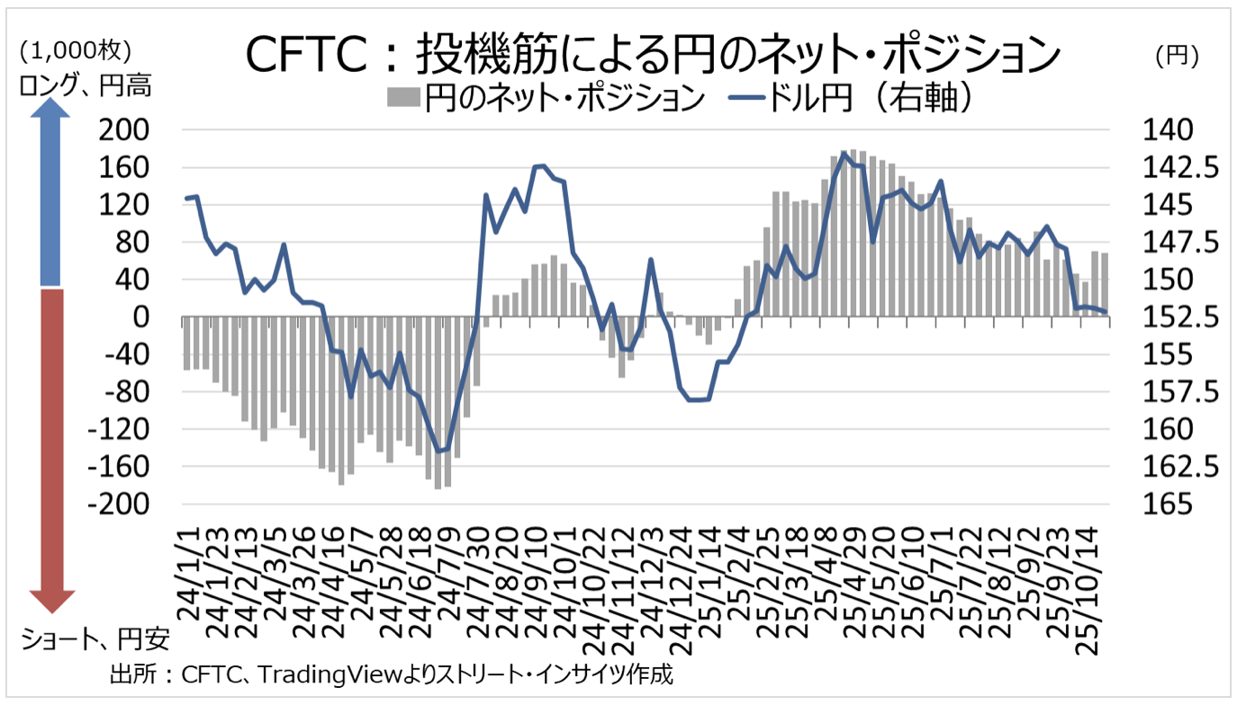 当該週は、高市氏が首相に就任し、10月日銀金融政策決定会合で利上げに急ぐ必要性は乏しいとの報道が流れるなか、ドル円は約2週間ぶりに153円台を回復した。