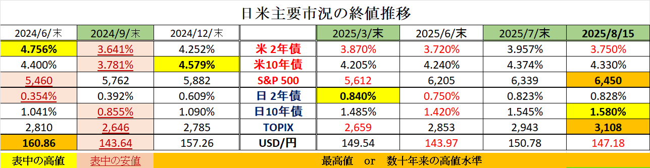 一方、ファンダメンタルズにおいては、月初の「雇用統計ショック」ともいえるリスクオフ展開を金融市場はしのぎ切り、米政権からの「FRBへの利下げ圧力が高まった」ことを背景に、ここ2週間は一転して「(9月以降の大幅な利下げを織込んだ)リスクオン展開が急加速」しました。