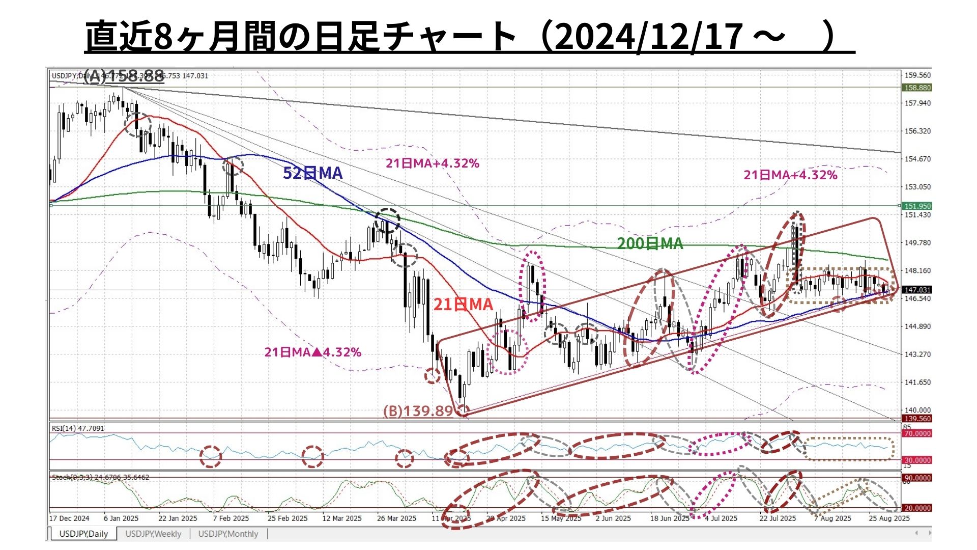 ④ 147.48円=<21日MA>