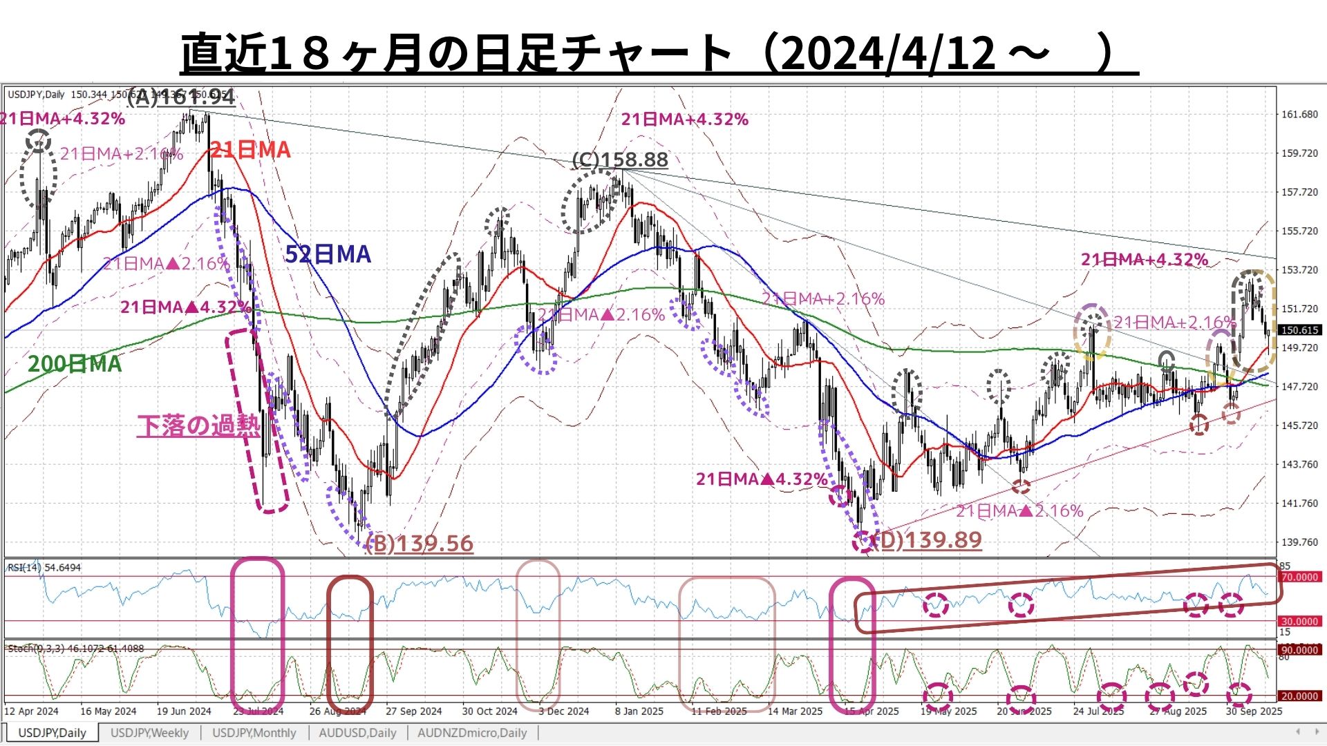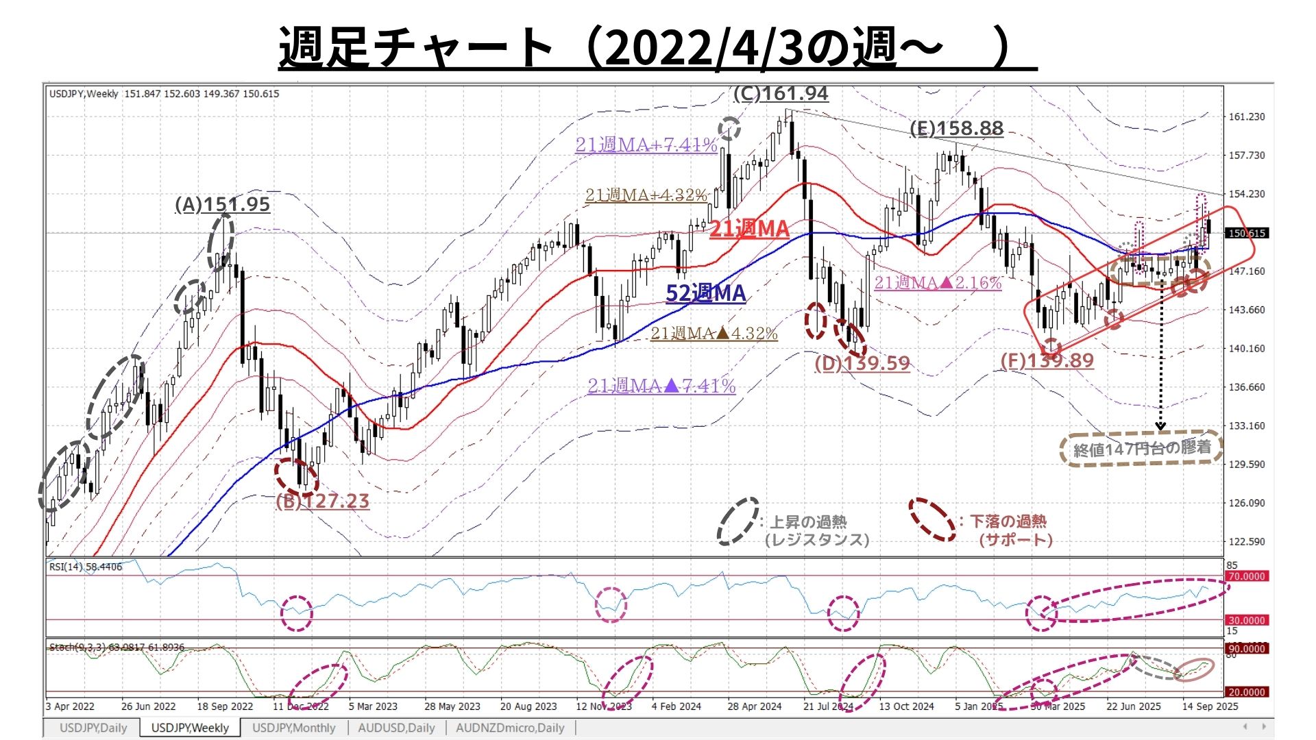 □既述の20ヶ月MA(150.45@10/20)を10月の終値で上抜けるかに注目