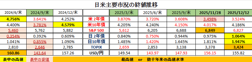 □先週の日米金融市場の変化(下表右端):米利下げは一旦材料出尽くし