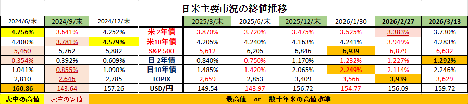 □先週の日米金融市場の変化(下表右端):イラン紛争長期化懸念でリスクオフ続く