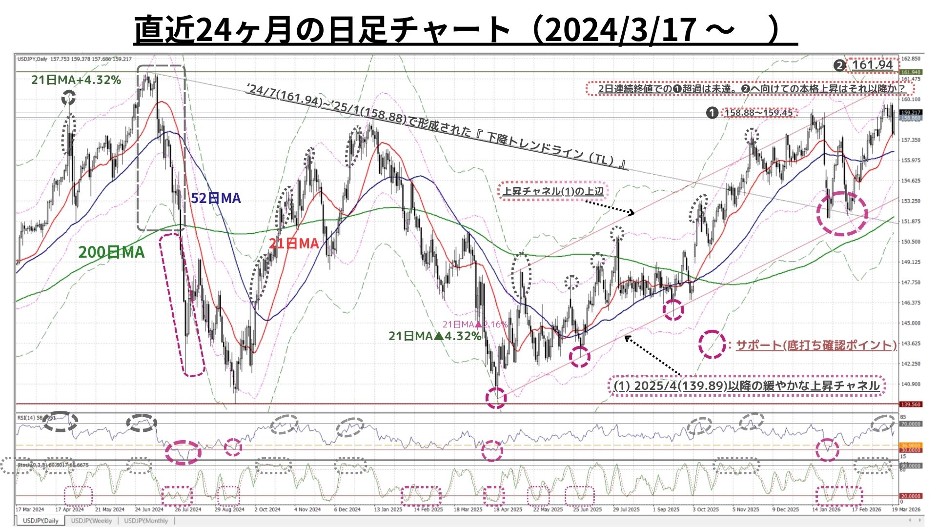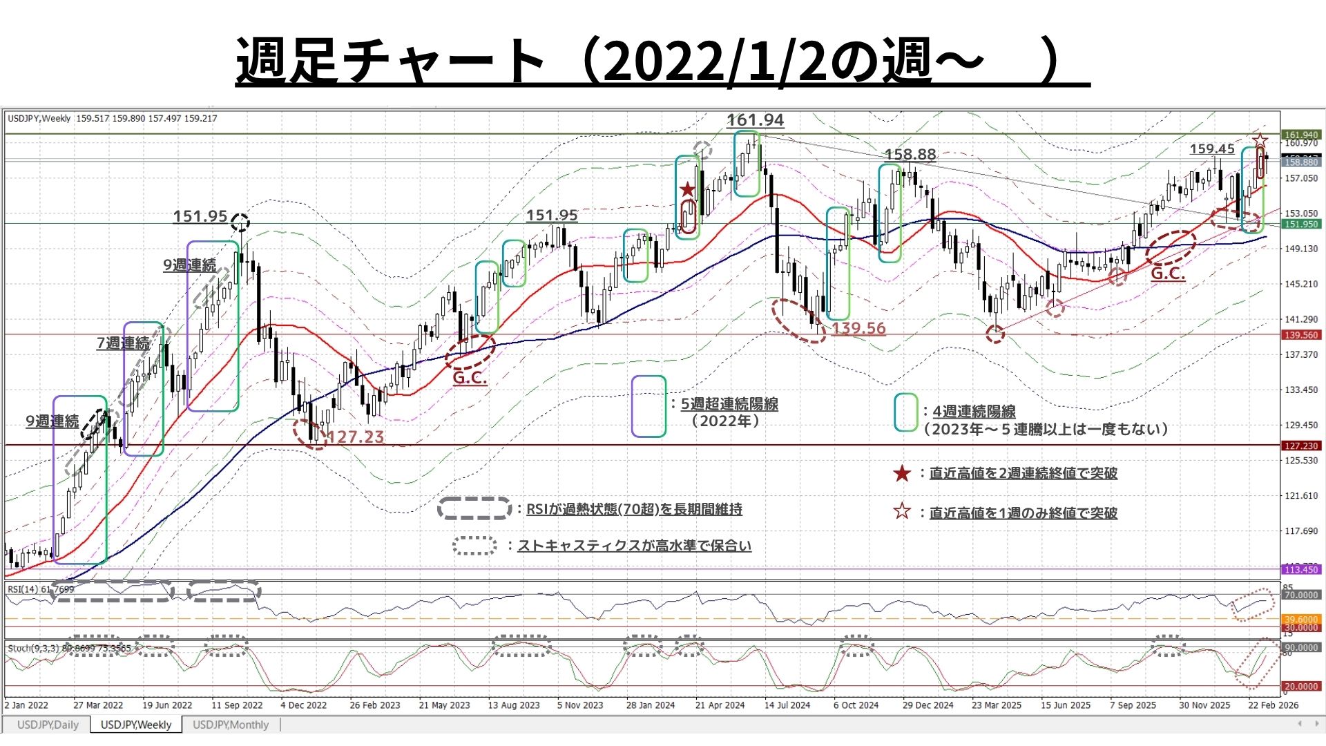 Weekly Report (3/23) 5週続伸はならず160円台トライは一旦休止も、中期上昇サイクルは依然存続