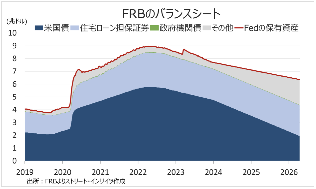 その他、かねてから主張していた足元6.7兆ドル規模のバランスシートの縮小必要性を唱えた。ウォーシュ氏は「バランスシートはより小さくあるべきで、長期国債を保有すべきではない」と明言。FRBは「財政領域から手を引くべき」であり、「より小さなバランスシートであれば、金利はより低く推移させ、インフレは改善し、経済は強くなる」との見方を強調した。そのうえで、バランスシートの縮小には綿密な調整と熟慮、明確な説明が必要と述べた。トランプ氏には、「国債購入より金利を使う方が良いと伝えた」とも言及した。