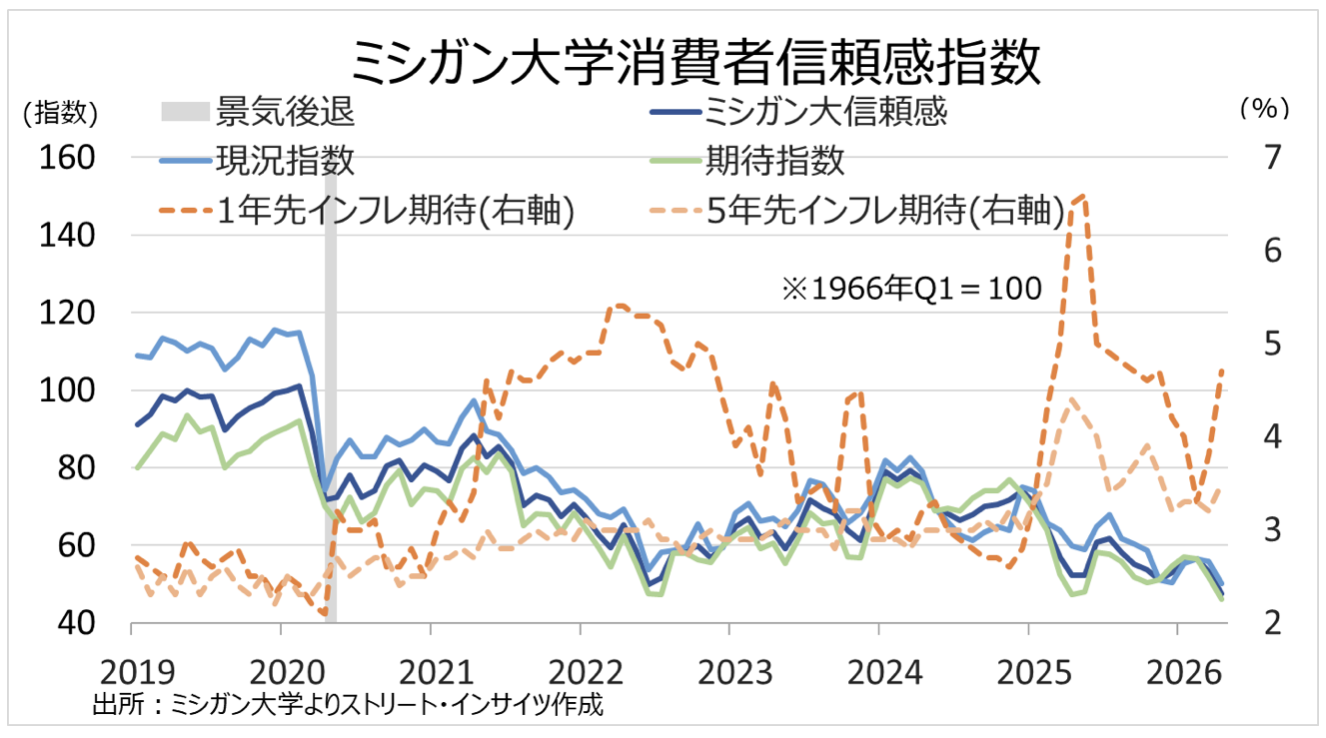 チャート:米4月ミシガン大学消費者信頼感指数・確報値の1年先は5カ月ぶりの高水準