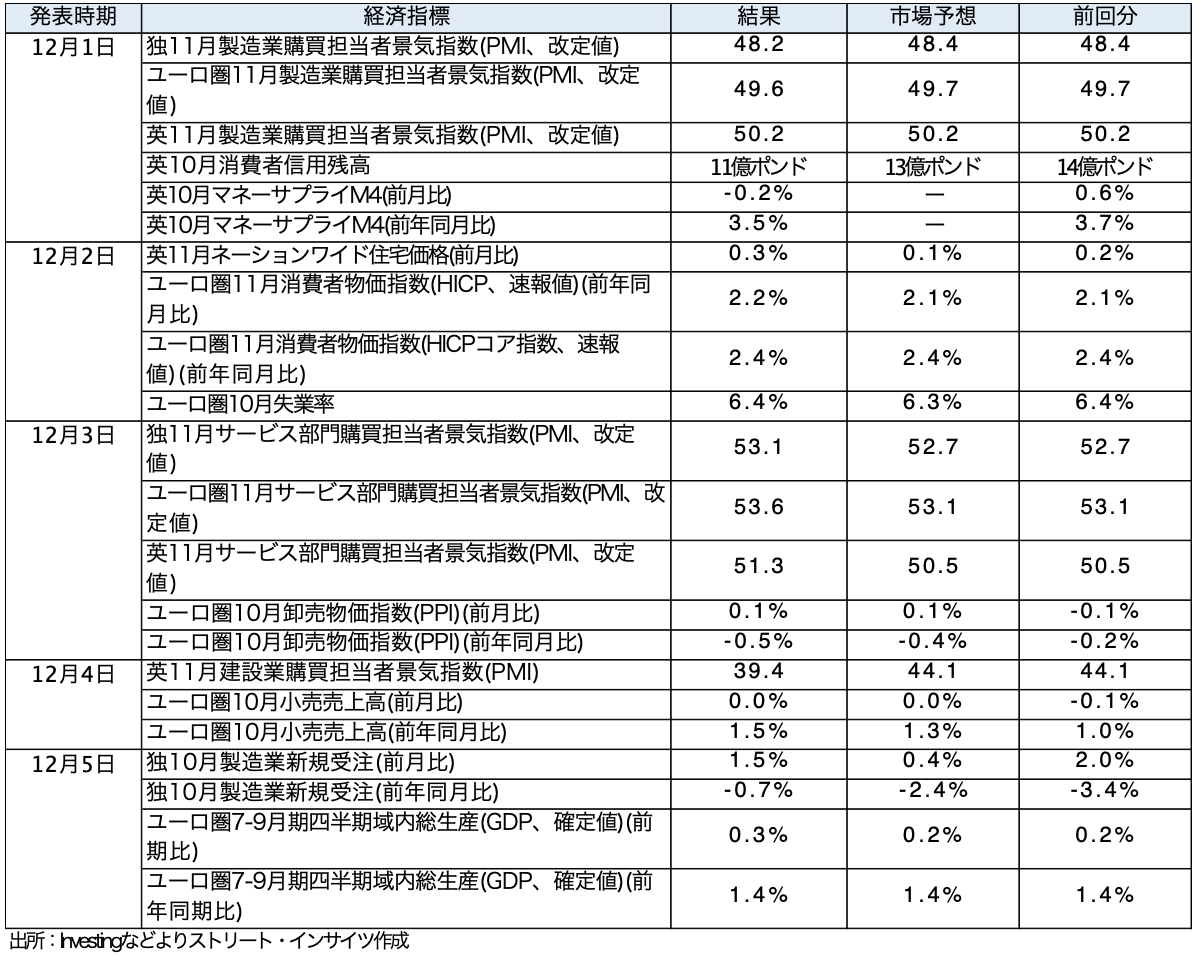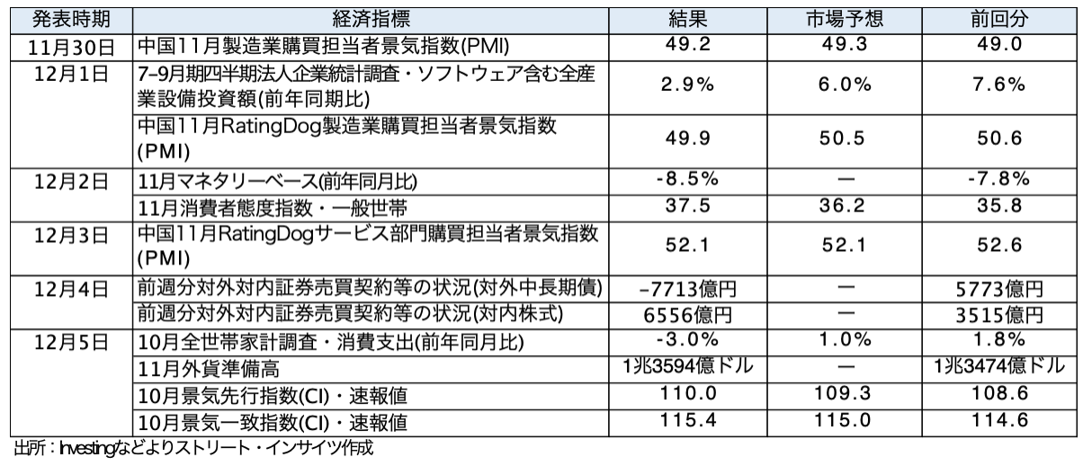 - 12月8日週の経済指標は、1日に中国11月貿易収支、日本10月実質賃金、日本Q3実質GDP成長率・改定値、9日はADP週次の全国雇用者数と米11月JOLTS(求人件数含む)、 10日は日本11月国内企業物価指数、中国11月CPIとPPI、米Q3雇用コスト指数の発表を予定する。11日には10-12月期四半期法人企業景気予測調査・大企業全産業業況判断指数、米新規失業保険申請件数、米9月貿易収支、12日には日本10月鉱工業生産を予定する。