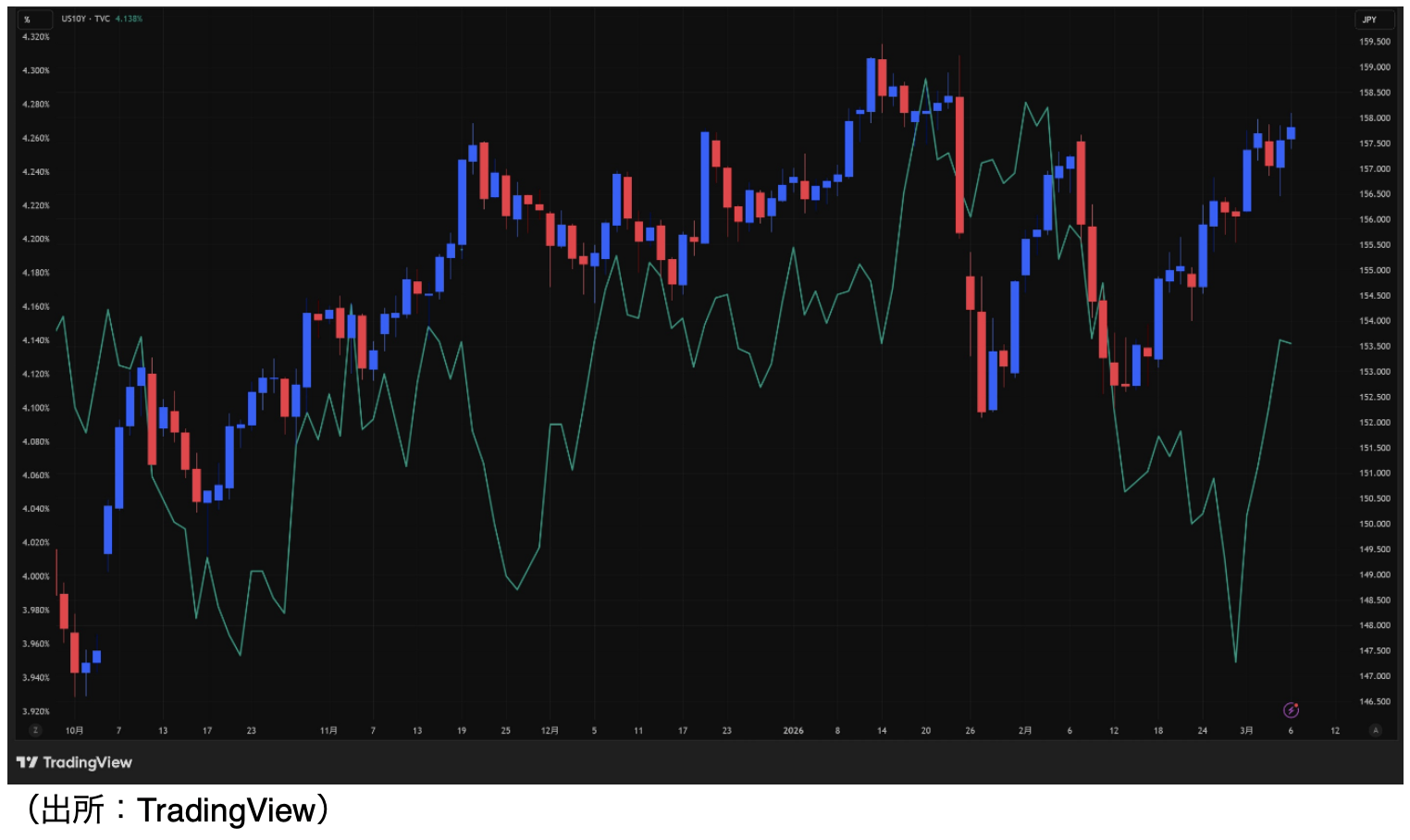3日のドル円は、もみ合いを経て上昇。ドル円は、片山財務相が閣議後に「為替注視し必要な対応を取る」、「日米財務相共同声明に介入は盛り込まれている」と発言するなか、157円前半での推移を続け、一時157.15円まで本日安値を更新した。しかし、ロンドン時間から買いが再燃し、一時157.97円と1月23日以来の158円乗せに迫った。NY時間にトランプ大統領が米軍を投入してホルムズ海峡を通る石油・ガスタンカーを護衛する方針に加え、米国際開発金融公社(DFC)に対し、ペルシャ湾を航行する海上貿易に政治リスク保険と金融保証を提供するよう指示したことが報じられると、WTI原油先物が下落した動きにつれ、ドル円は上げ幅を縮小した。ただし、下値は堅く157円半ば程度にとどまった。