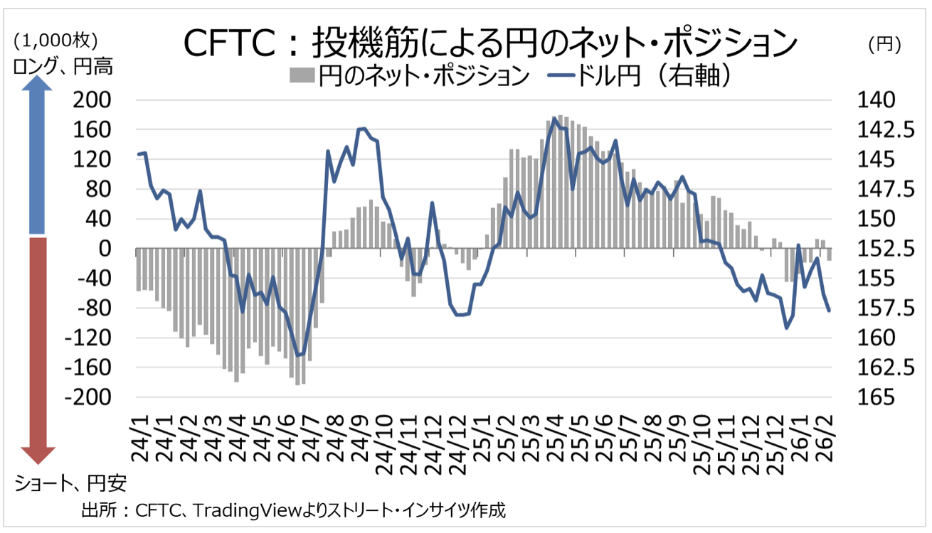 チャート:投機筋の円のネット・ポジションは、3週ぶりにネット・ショート