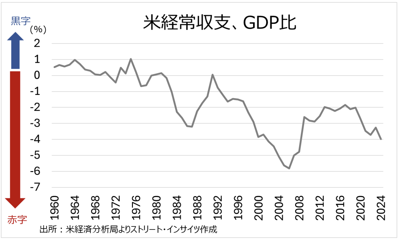 チャート:米経常赤字、GDP比4%に
