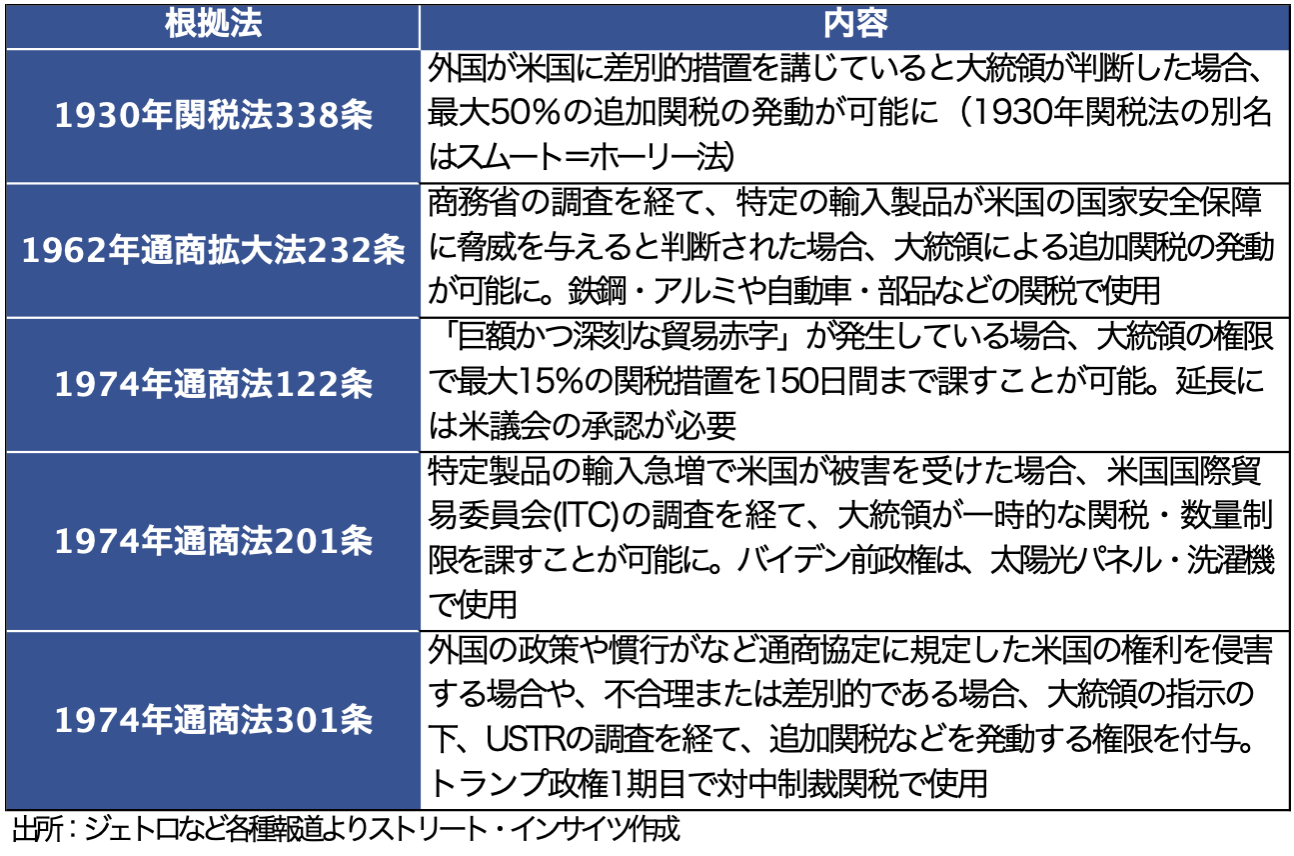 チャート:IEEPA以外で、トランプ氏が会見で言及した関税代替措置